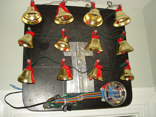 将这部分电路制作完成后,用手捏一螺丝力的金属部分去碰LM386的第3脚,正常时可听到扬声器中发出的“吱、吱”声。然后再将门铃音乐发生电路和报警声 音发生电路焊好,通电后分别将VT4和VT5的集电极和发射极短接一下,可听到两种声音,这此说明音频部分电路工作都正常。